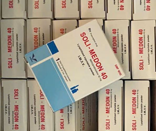 Thuốc Solu-Medrol 40mg (tên hoạt chất: methylprednisolone sodium succinate) là một corticosteroid dạng tiêm, được sử dụng để điều trị các tình trạng viêm nặng như hen suyễn cấp, viêm khớp dạng thấp, thiếu máu tan huyết tự miễn, lupus ban đỏ hệ thống, và các bệnh lý viêm khác.