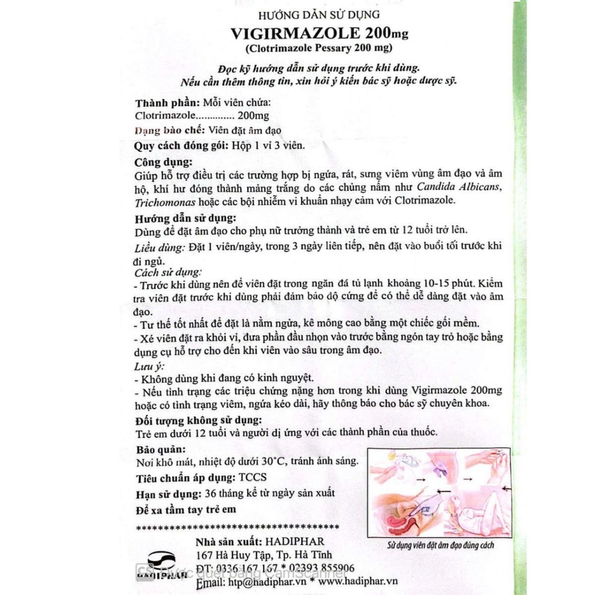 Thành phần: Trong mỗi viên Vigirmazole 200mg có chứa: