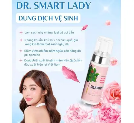 Dung dịch vệ sinh phụ nữ DR. SMART LADY với chiết xuất sâm mầm Hàn Quốc, collagen và lô hội, giúp làm sạch dịu nhẹ, khử mùi, dưỡng ẩm, ngăn ngừa vi khuẩn và mang lại cảm giác tươi mát, tự tin mỗi ngày.