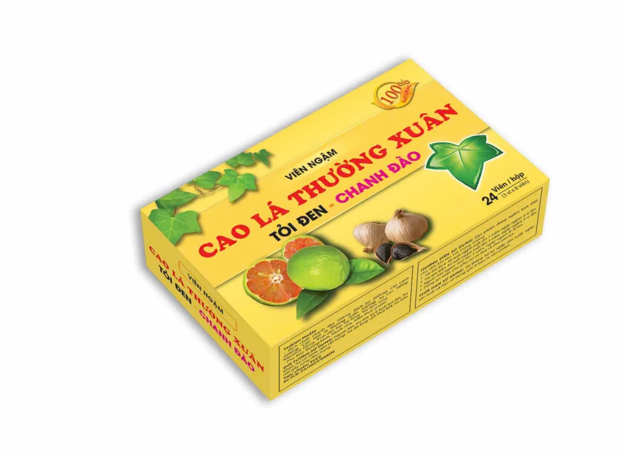 Kẹo ngậm ho Cao lá thường xuân tỏi đen chanh đào – bổ phế, giảm ho, dịu cổ họng