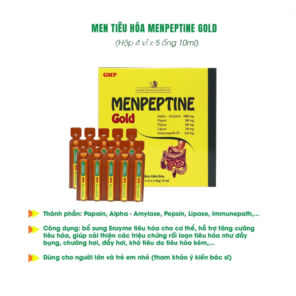 Giúp bổ sung enzyme tiêu hóa, hỗ trợ tăng cường tiêu hóa, giúp cải thiện các triệu chứng đầy hơi, chướng bụng, khó tiêu do tiêu hóa kém.