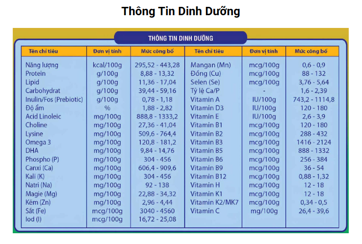 Dạng bào chế: Sữa bột