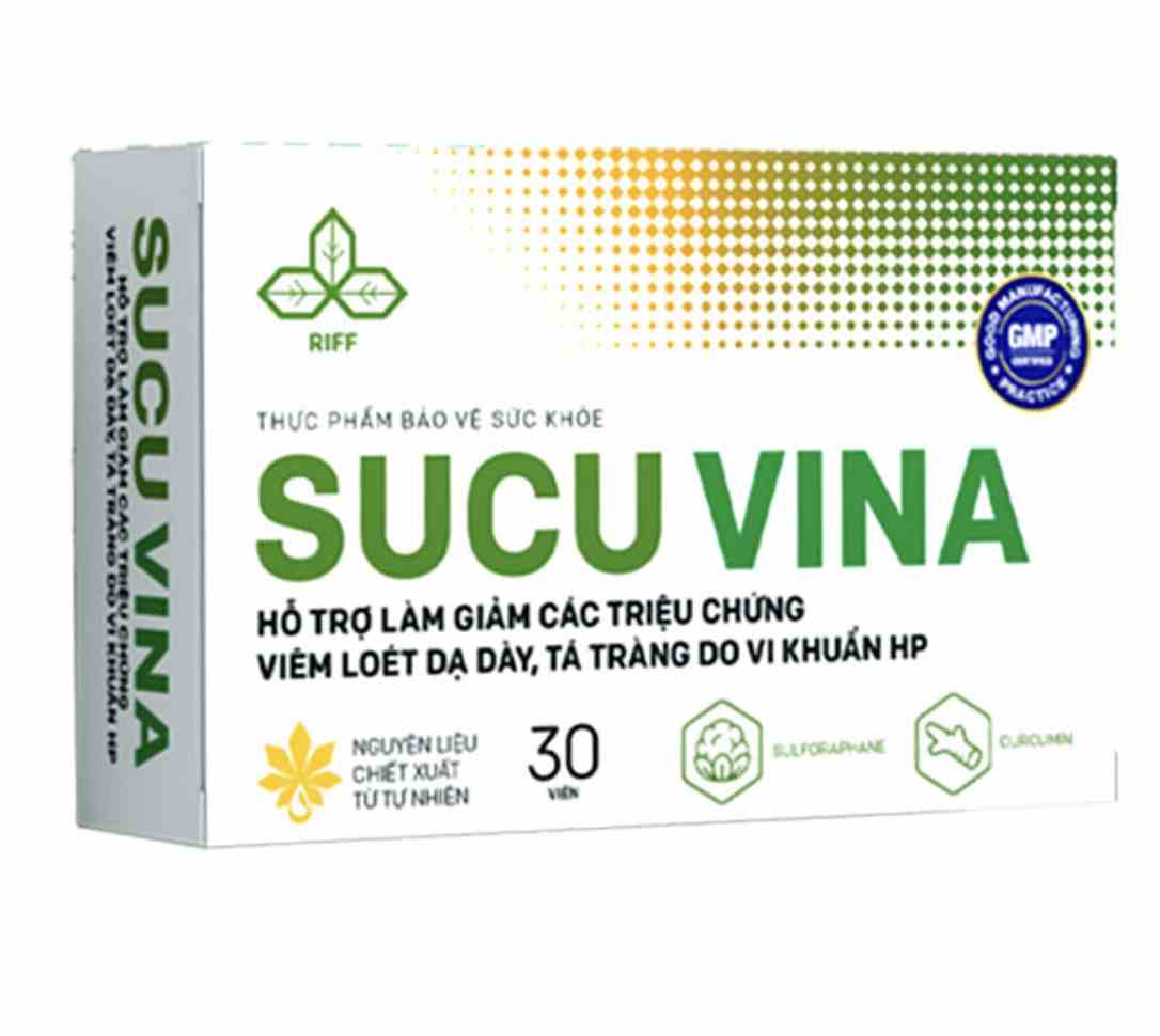 Sucu Vina được kết hợp thành phần từ thành phần thiên nhiên, cấp phép bởi Cục ATTP– Bộ Y Tế với công dụng giúp hỗ trợ chống oxy hóa, hỗ trợ trung hòa các gốc tự do và hỗ trợ làm giảm các triệu chứng viêm loét dạ dày, tá tràng do vi khuẩn HP gây ra.
