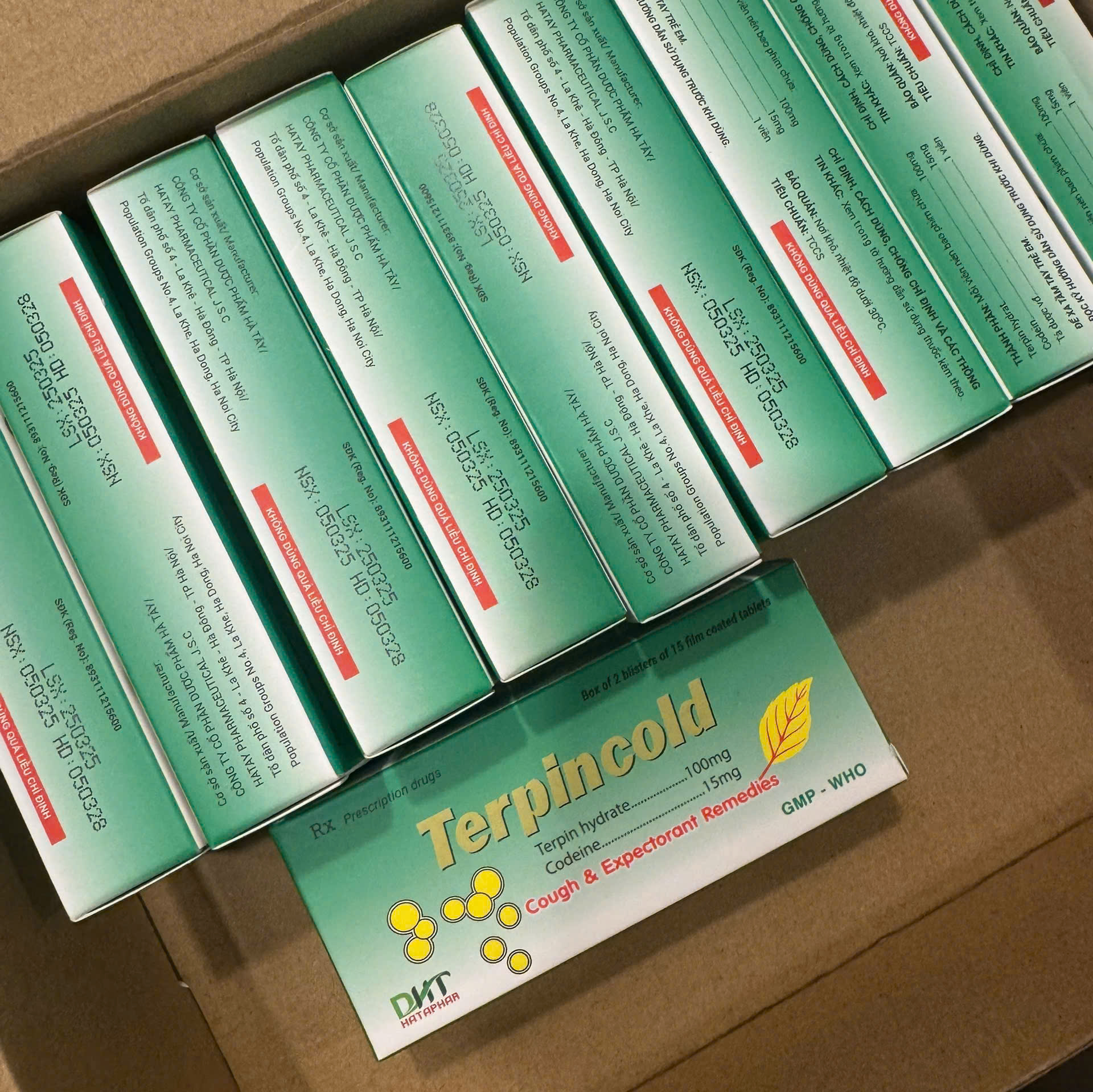 Trước khi sử dụng thuốc bạn cần đọc kỹ hướng dẫn sử dụng và tham khảo thông tin bên dưới. Chống chỉ định Thuốc Terpincold Hà Tây 100V chống chỉ định trong các trường hợp sau: Dị ứng với bất kỳ thành phần nào của thuốc. Trẻ em dưới 15 tuổi, có tiền sử động kinh hoặc co giật do sốt cao. Trẻ dưới 18 tuổi, vừa cắt amiđan và/hoặc nạo V.A. Suy hô hấp. Ho suyễn. Phụ nữ cho con bú. Kết hợp với các dẫn xuất có liên quan morphin (Buprenorphine, nalbuphin, pentazocin). Những bệnh nhân mang gen chuyển hóa thuốc qua CYP2D6 siêu nhanh. Trẻ em dưới 12 tuổi để điều trị ho do có nguy cơ cao xảy ra các phản ứng có hại nghiêm trọng và đe doạ tính mạng. Thận trọng khi sử dụng Không dùng điều trị ho có đờm. Không dùng chung với thuốc long đờm. Chỉ nên dùng liều thấp codein; trong trường hợp không giảm triệu chứng, không được tăng liều mà cần đánh giá lại tình trạng bệnh. Không nên dùng cho trẻ em bị khó thở hoặc thở khò khè khi ngủ, người có chuyển hoá thuốc cực