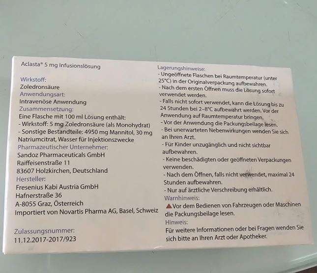 Acid zoledronic (dưới dạng Acid zoledronic monohydrat) 5mg/100ml