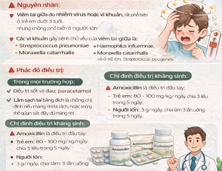Viêm tai giữa là bệnh nhiễm trùng tai giữa thường gặp, nguyên nhân chủ yếu do vi khuẩn. Việc lựa chọn kháng sinh cần dựa trên tác nhân gây bệnh thường gặp, mức độ bệnh và tiền sử dị ứng thuốc của người bệnh.