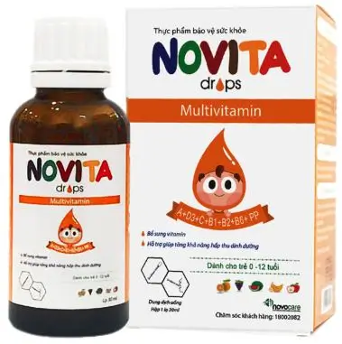 Novita drops là thực phẩm bảo vệ sức khỏe có công dụng giúp hỗ trợ giúp tăng khả năng hấp thu dinh dưỡng, giúp bổ sung vitamin cần thiết cho cơ thể.