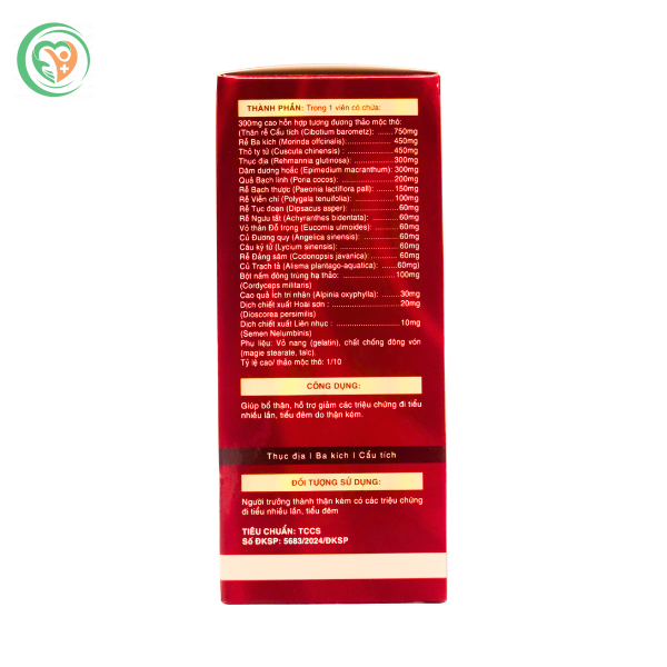 Bổ sung thêm đông trùng hạ thảo và câu kỷ tử, sản phẩm không chỉ hỗ trợ thận mà còn giúp tăng cường sinh lực, cải thiện sức đề kháng cho cơ thể. Uống đều đặn 2 lần mỗi ngày giúp cải thiện dần tình trạng tiểu đêm, từ đó hỗ trợ giấc ngủ sâu và phục hồi thể lực. Viên uống phù hợp cho cả nam và nữ trưởng thành, nhất là người có chức năng thận suy giảm do tuổi tác hoặc áp lực công việc. Sản phẩm được nghiên cứu và sản xuất tại Việt Nam theo tiêu chuẩn chất lượng, là lựa chọn đáng tin cậy để hỗ trợ chăm sóc sức khỏe tiết niệu một cách tự nhiên, hiệu quả.