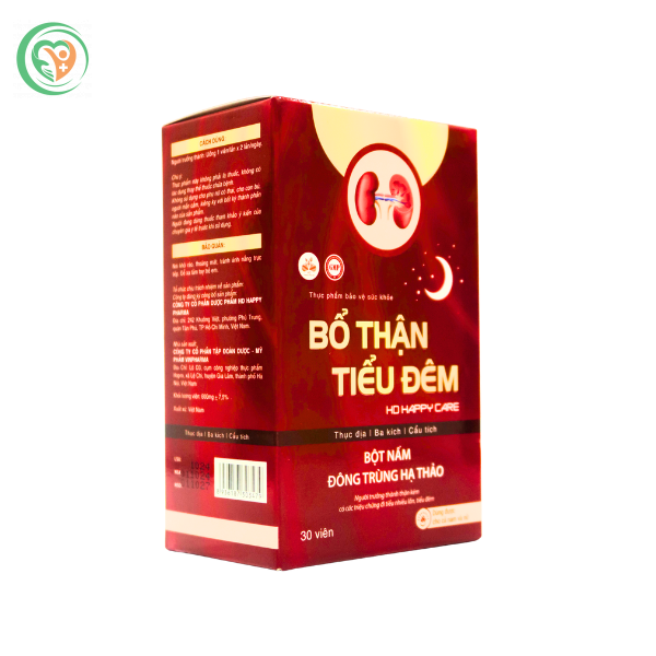 Viên bổ thận tiểu đêm Hd Happy Care 30 viên là sự kết hợp tinh túy từ hơn 15 loại thảo dược quý như ba kích, thục địa, thỏ ty tử, đỗ trọng, đông trùng hạ thảo… giúp hỗ trợ cải thiện chức năng thận, giảm tiểu đêm và tiểu nhiều lần do thận yếu. Sản phẩm được sản xuất trên dây chuyền hiện đại, với tỷ lệ chiết xuất đậm đặc 1:10 mang lại hiệu quả sinh học cao hơn cho người sử dụng. Đặc biệt phù hợp với người trưởng thành đang gặp vấn đề về đường tiết niệu, ngủ không sâu giấc do tiểu đêm gây gián đoạn. Viên uống nhỏ gọn, tiện lợi, dễ sử dụng và mang đến giải pháp hỗ trợ lâu dài, an toàn từ dược liệu thiên nhiên.