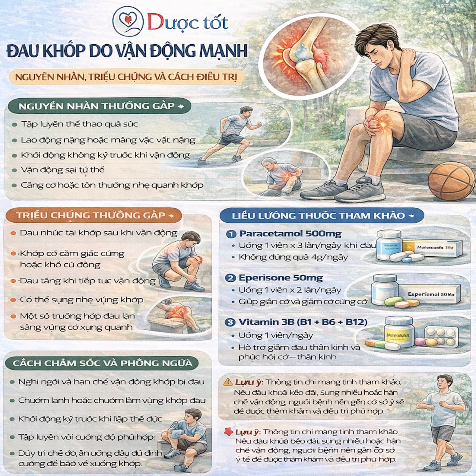 Đau khớp do vận động mạnh là tình trạng đau nhức ở các khớp sau khi tập thể dục quá sức, lao động nặng hoặc vận động sai tư thế. Bệnh thường gặp ở các khớp như gối, vai, cổ tay, khuỷu tay và cổ chân. Nếu được nghỉ ngơi và điều trị đúng cách, tình trạng này thường cải thiện sau vài ngày.
